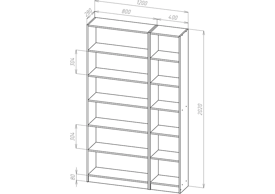 | Книжные шкафы, стеллажи от 1000 мм до 1600 мм | 400 | 1200 | 700 |