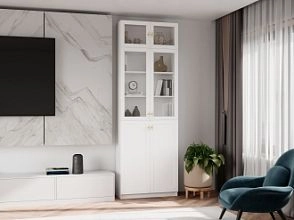 Комплектация: фасады - рамка МДФ квадро + вставка ЛДСП/стекло простое, задняя стенка ЛДВП белого цвета, ручка кнопка КН-1 хром, петли без доводчика, роликовые направляющие
