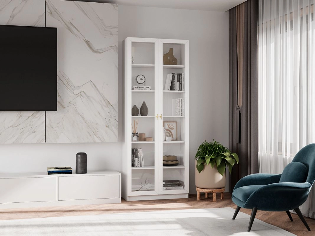 Шкаф для книг Билли Хелена-20 Белый/Золото