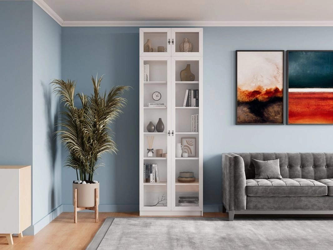 Шкаф для книг Билли Хелена-20 с антресолью Белый/Черный