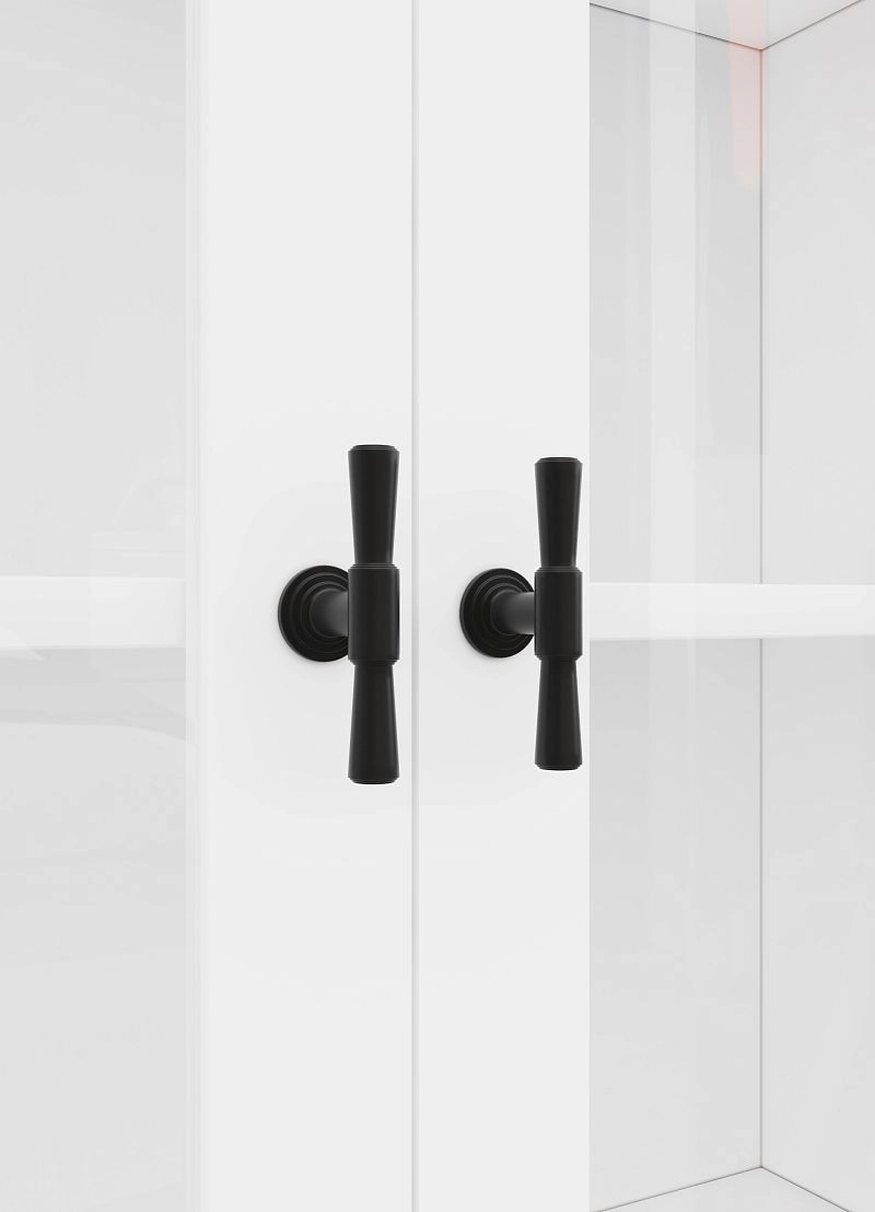 Комплектация: фасады - рамка МДФ квадро + вставка стекло простое, задняя стенка ЛДВП белого цвета, ручка ZA2391 кнопка черная MBK, арт. № 39512, петли без доводчика