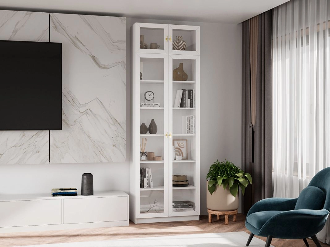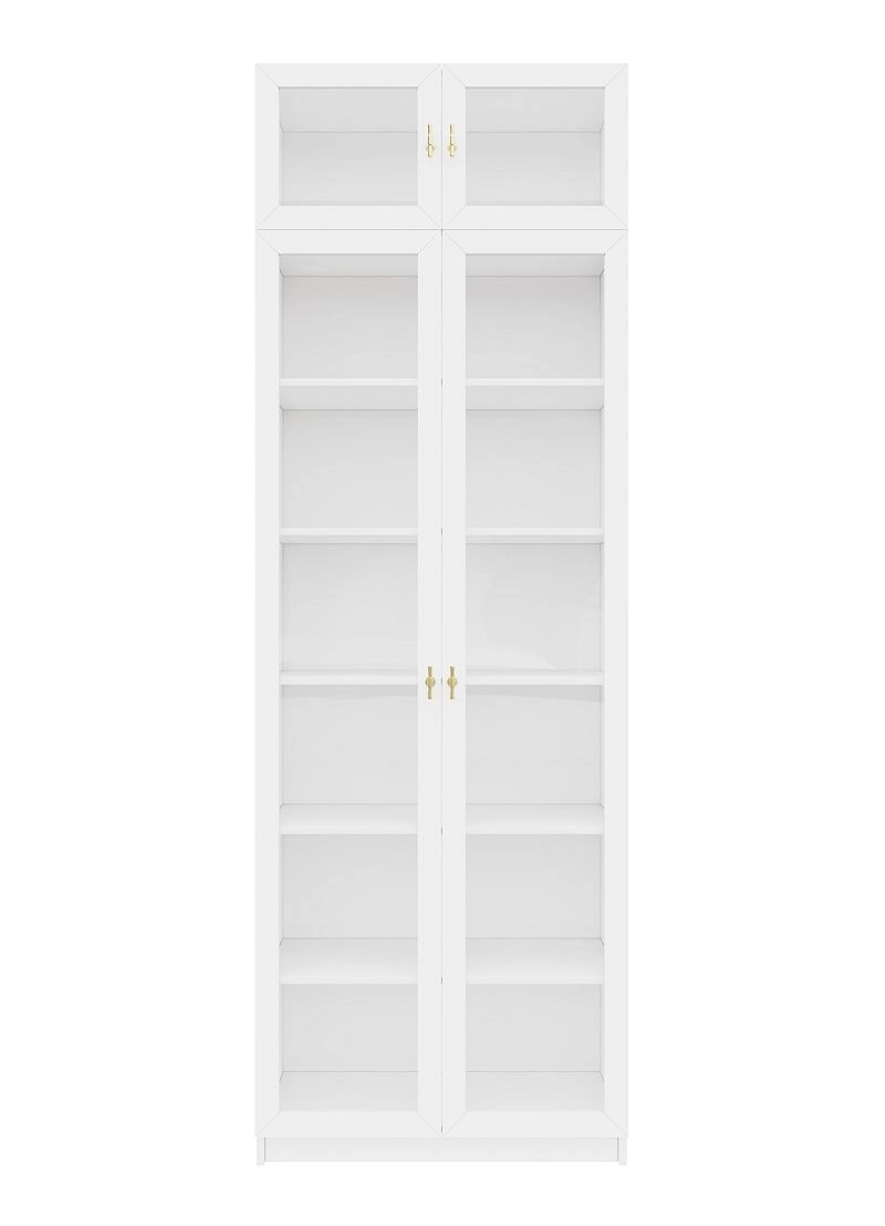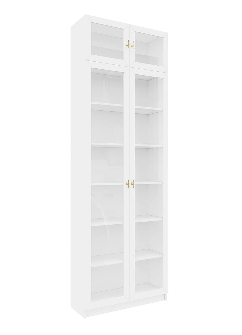 Шкаф для книг Билли Хелена-20 с антресолью Белый/Золотой