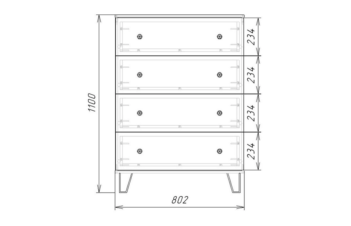 Комплектация: шариковые направляющие 100% выдвижения, кромка в цвет корпуса, ручка мебельная кнопка черный матовый RC289BL, опора нерегулируемая №33 Н=120 черный - (30)