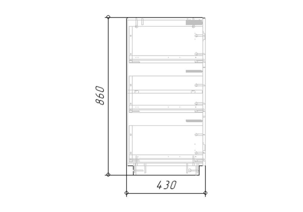 Комплектация: система открывания Push-to-open, направляющие шариковые 100% выдвижения