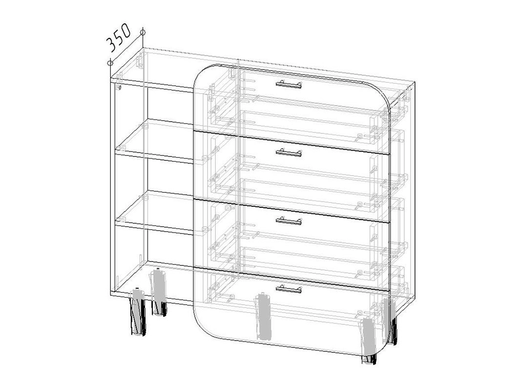 | Книжные шкафы, стеллажи от 600 мм до 1000 мм | 350 | 1000 | 600 |