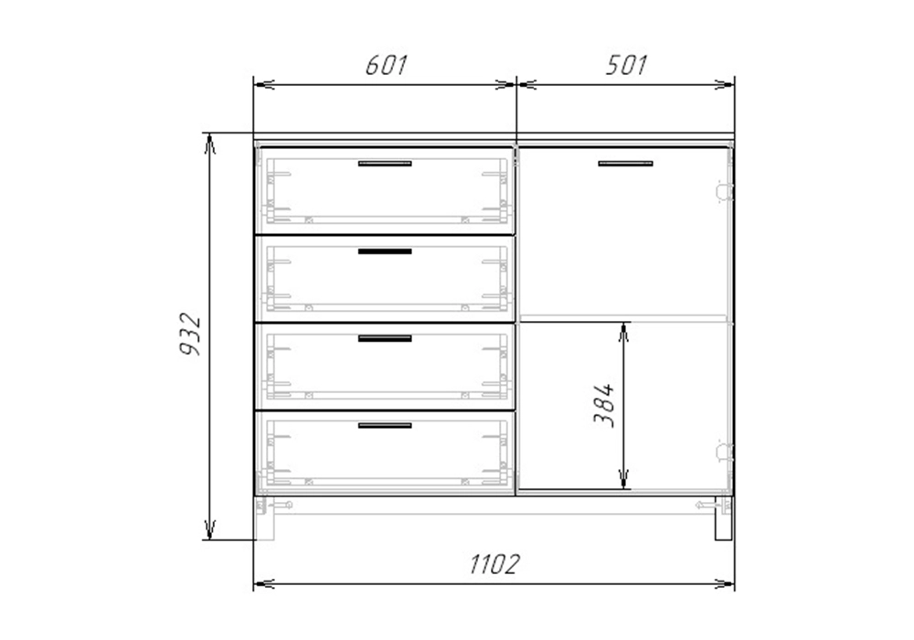 Комплектация: направляющие шариковые 100% выдвижения, фасады с фрезеровкой, петли без доводчика, ножки массив дерева