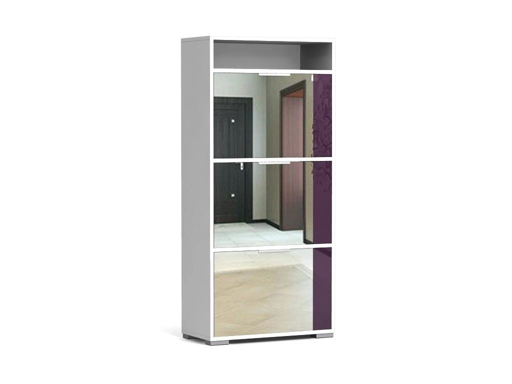 Цвет по фото: корпус ЛДСП белый, фасад МДФ баклажан глянец с зеркалами