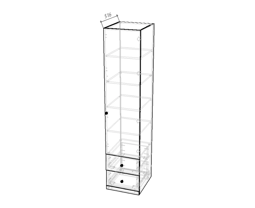 Комплектация: наполнение: Б (4 полки) / 2 ящика, шариковые направляющие 100% выдвижения без доводчика, петли без доводчиков