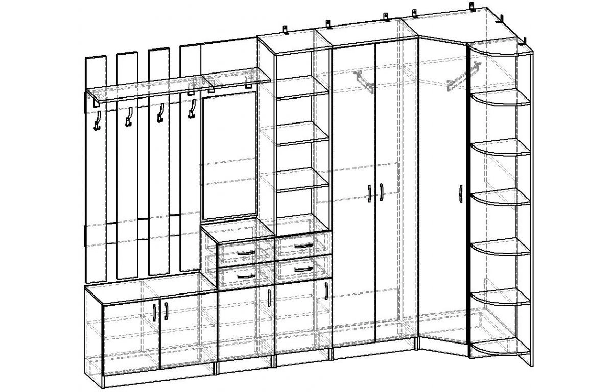 | Гардеробные (шкафы по типу Ромео, Меркурий итп) | расчёт по элементно, согласно тарифам на шкафы (см.выше) | ||