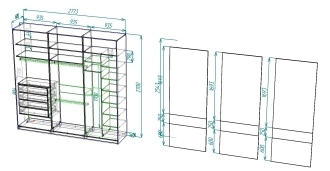 | Гардеробные (шкафы по типу Ромео, Меркурий итп) | расчёт по элементно, согласно тарифам на шкафы (см.выше) | ||
