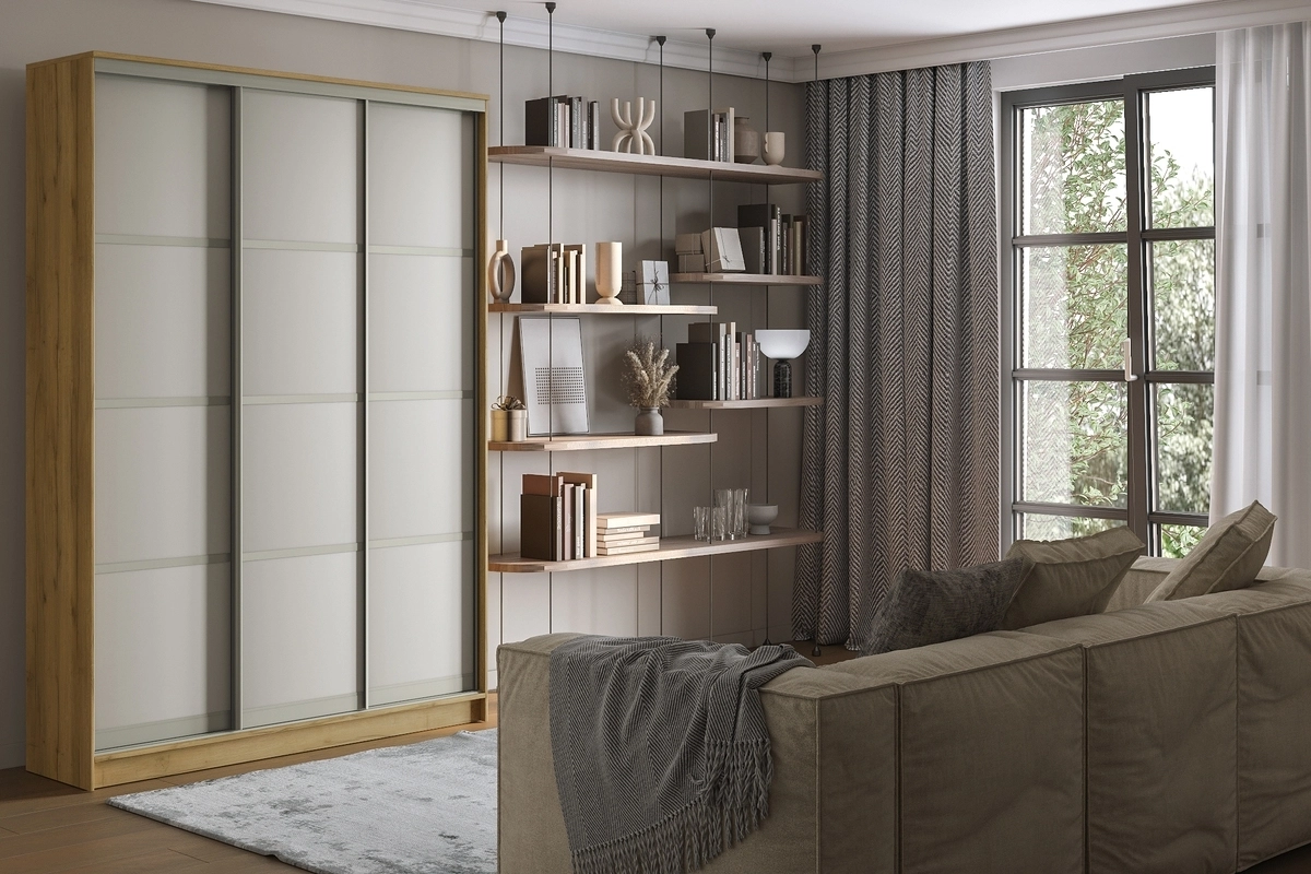 Шкаф-купе Борнео-3.2 Дуб Золотистый/Слоновая Кость