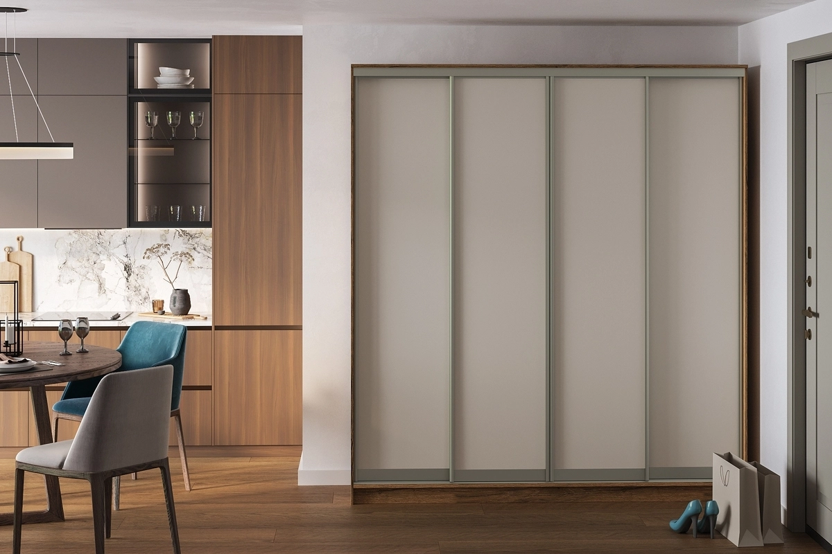 4. Не рекомендуется использовать ящики в соседних секциях. Ширина секции шкафа с ящиками должна быть меньше ширины фасада шкафа-купе.