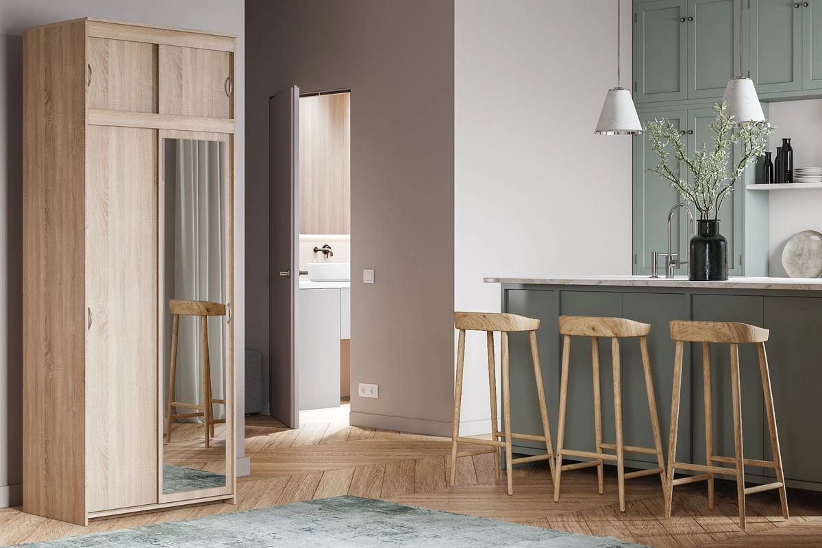 6. При высоте шкафа 1900 и 2000 мм текстура ЛДСП располагается горизонтально, как на фото. При высоте от 2100 до 2500 мм текстура располагается вертикально.