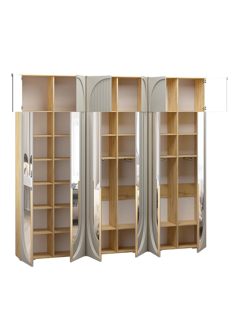 Размер отделений в каждом наполнении изготавливается по стандарту фабрики и может отличаться от фото. Если вам необходимы определенные размеры отделений в наполнении согласуйте это в чате с менеджером. При высоте шкафа 230-270 см антресоль слитная, 280-310 см съемная.