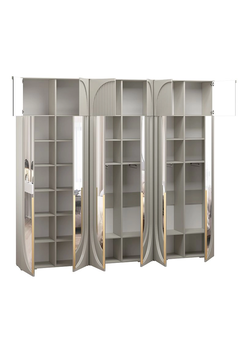 Размер отделений в каждом наполнении изготавливается по стандарту фабрики и может отличаться от фото. Если вам необходимы определенные размеры отделений в наполнении согласуйте это в чате с менеджером. При высоте шкафа 230-270 см антресоль слитная, 280-310 см съемная.