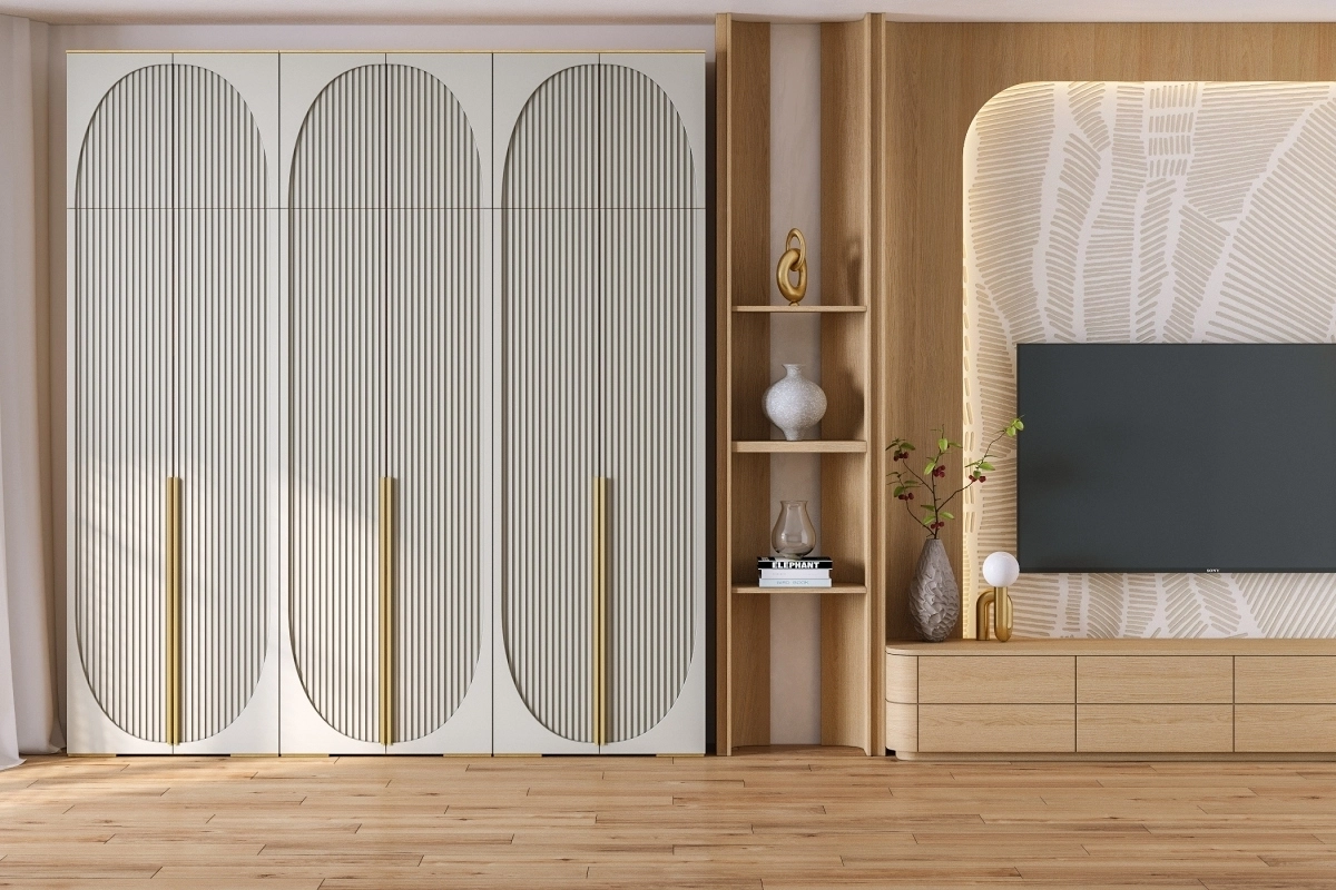 Шкаф распашной Брей-3 с антресолью Кашемир/Дуб Золотистый