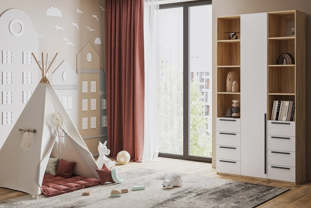 Шкаф распашной Хейсон-28 Белый Дуб Золотистый