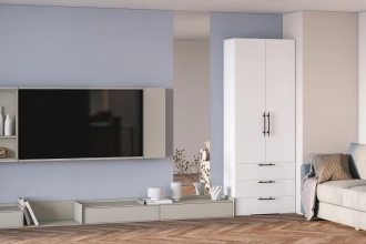 При глубине шкафа менее 500 мм используется выдвижной кронштейн, если глубина шкафа составляет 500 мм и более используется штанга для одежды. Выбор вариантов наполнения на фото за дополнительную плату.