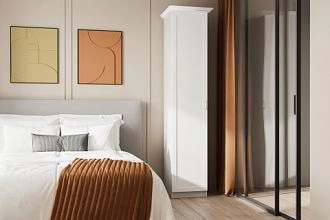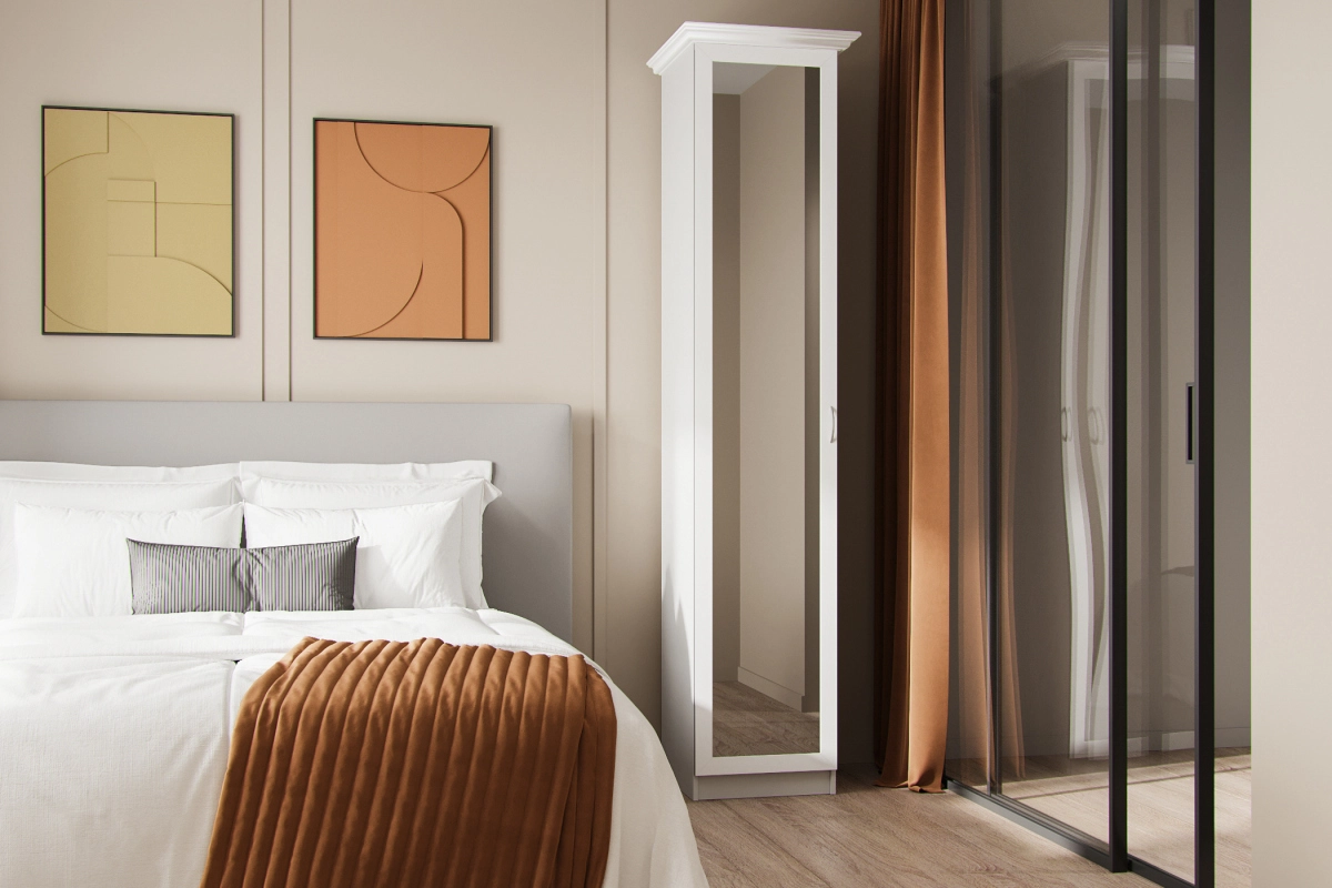 При глубине шкафа менее 500 мм используется выдвижной кронштейн, если глубина шкафа составляет 500 мм и более используется штанга для одежды.