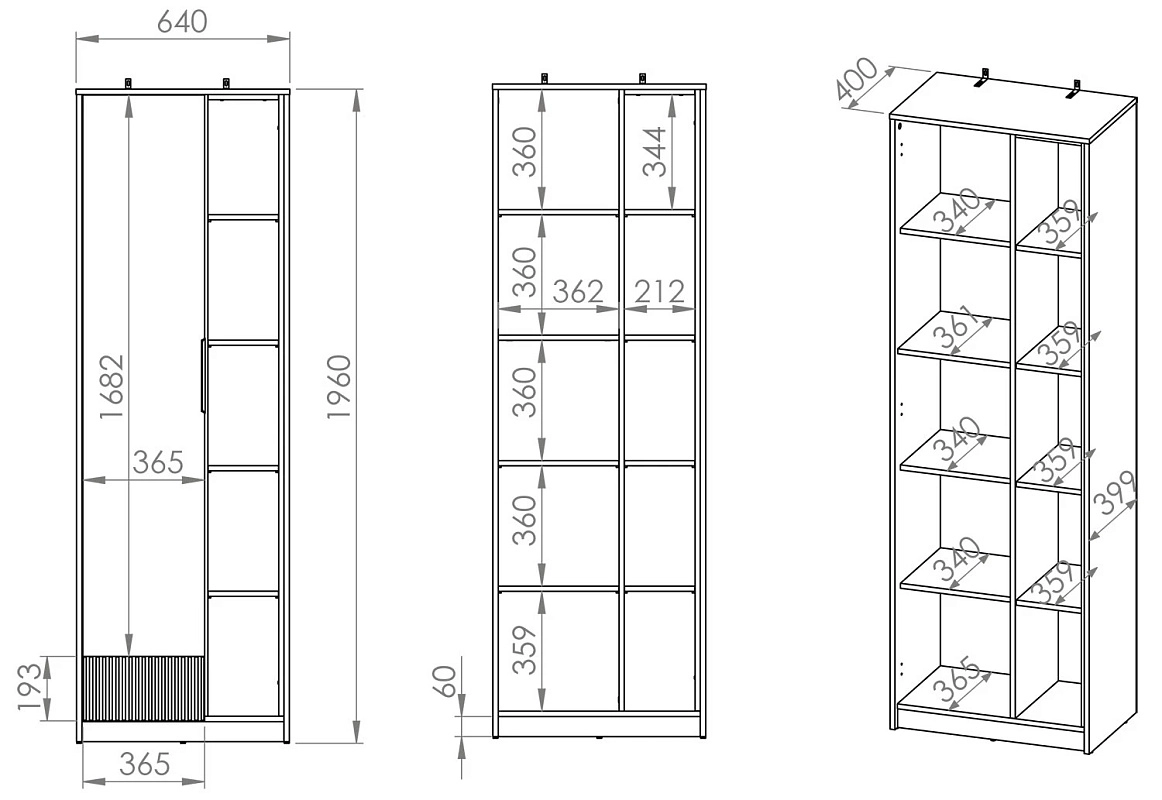 | Книжные шкафы, стеллажи от 600 мм до 1000 мм | 350 | 1000 | 600 |