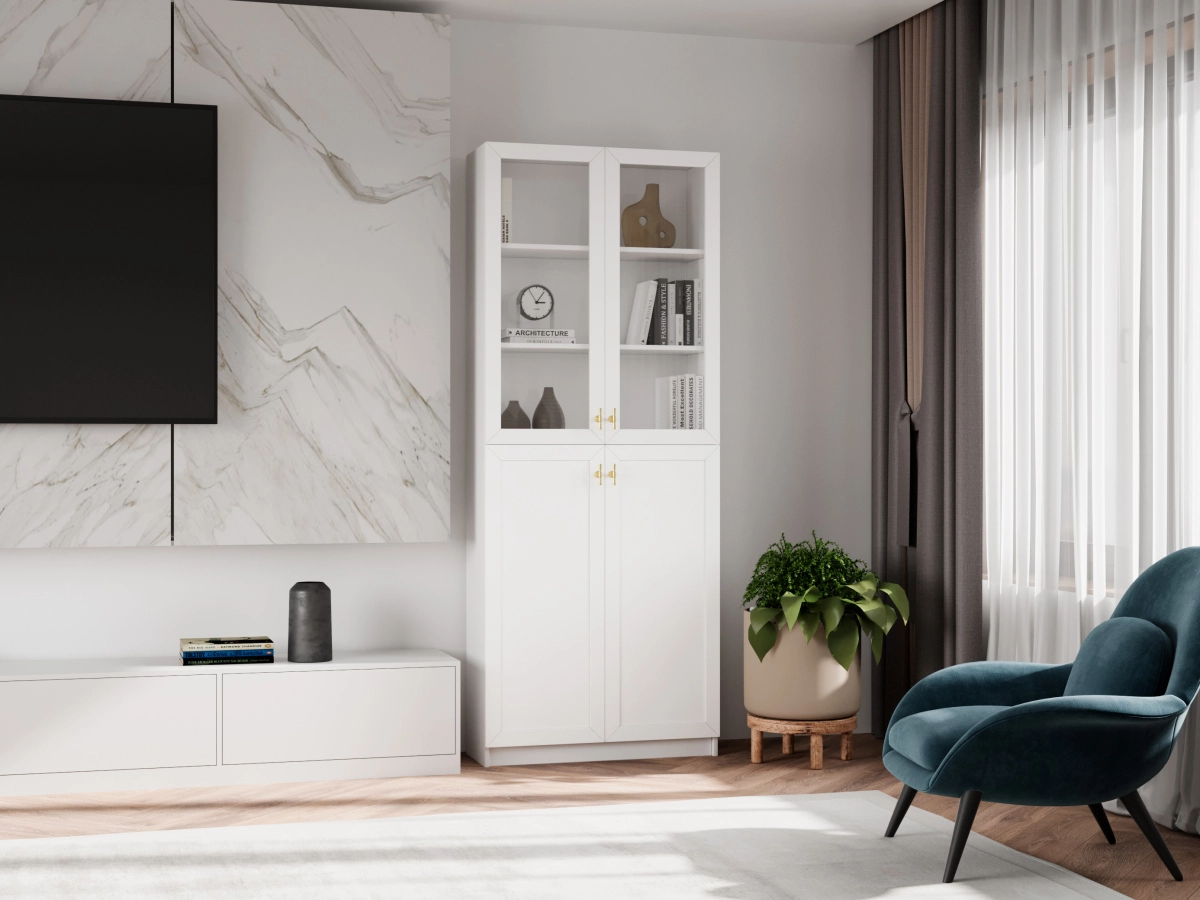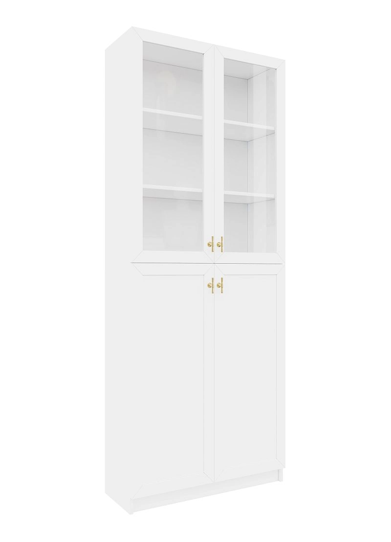 Комплектация: фасады - рамка МДФ квадро + вставка ЛДСП/стекло простое, задняя стенка ЛДВП белого цвета, ручка ZA2391 кнопка золото K-Gold, арт. № 39512-1, петли без доводчика