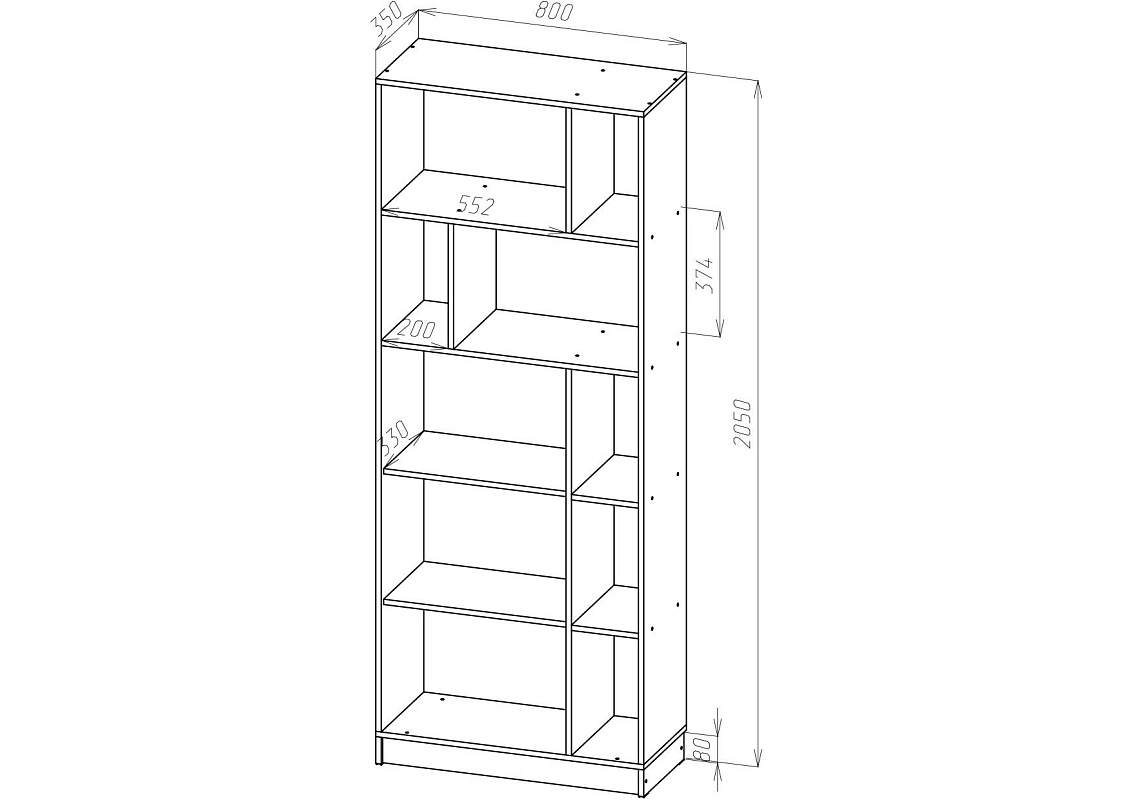 | Книжные шкафы, стеллажи от 600 мм до 1000 мм | 350 | 1000 | 600 |