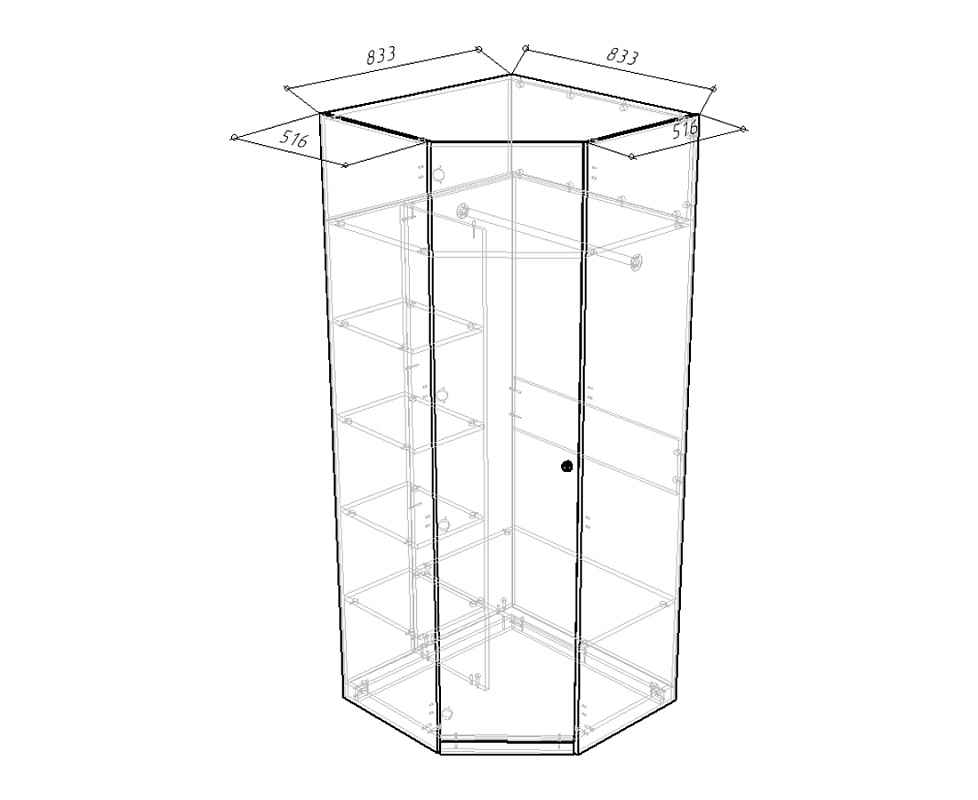 шкаф угловой Скарабей: 833/833х2100х520