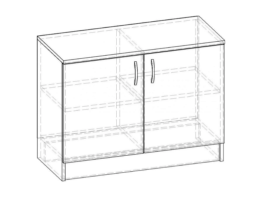 Комплектация: корпус, полки и фасады изготовлены из ЛДСП 16 мм с кромкой ПВХ 0,4 мм, задняя стенка ХДФ (ламинированная), металлические ручки-скобы, петли на фасадах металлические, угол открывания 90 градусов, без доводчиков